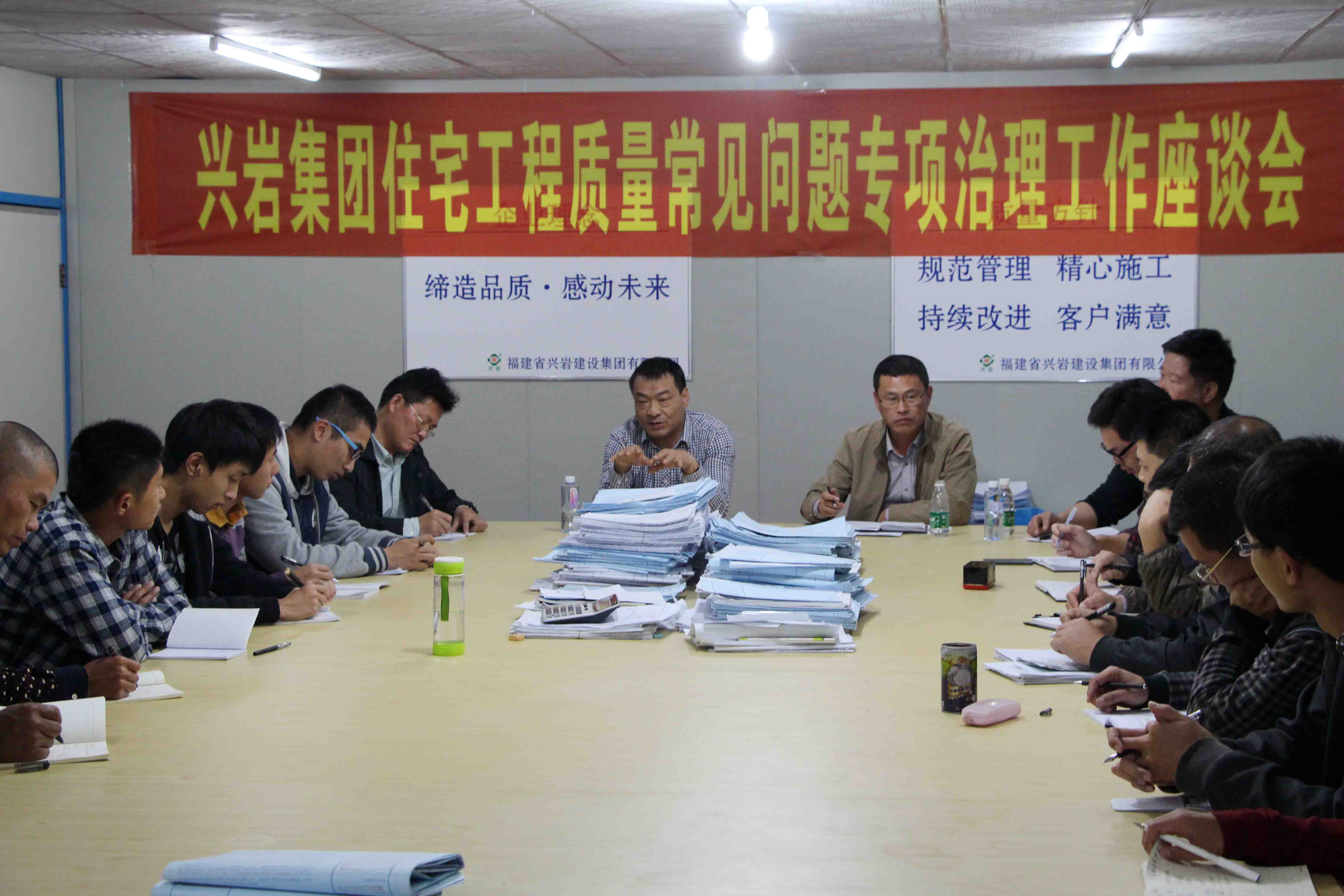 為鞏固我公司工程質量管理的成果,促進我公司工程質量管理水平進一步提高,按照住房城鄉建設部《住宅工程質量常見問題專項治理工作方案》要求及《福建省住房和城鄉建設廳關于印發〈住宅工程質量常見問題專項治理工作方案〉的通知》(閩建建函〔2013〕233號)精神,我公司于2014年12月2日在金里花園項目部舉行了住宅工程常見質量問題專項治理工作座談會。