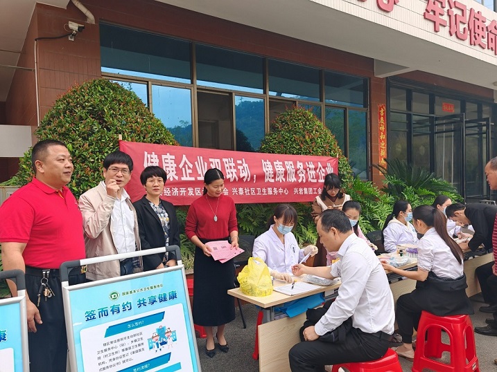義診·健康企業雙聯動,健康服務進企業 一份愛心·一份真情 12月14日上午,興泰社區衛生服務中心聯合長泰經濟開發區計生協會到興巖集團開展“健康企業雙聯動,健康服務進企業”活動。 增強了職工的健康保健意識,解決職工“健康后顧之憂”。