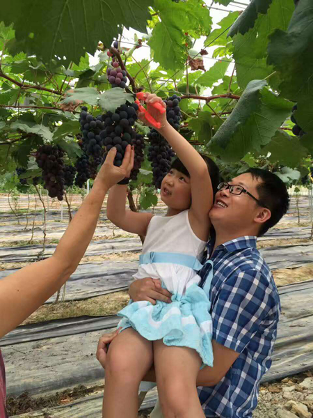 一走進采摘區,大伙便按捺不住激動的心情,直奔目標而去,在葡萄架下穿梭,散發著陣陣清甜香味的葡萄發出了難以抵擋的誘惑,大家紛紛拿起手中的剪刀摘下了一串串烏黑、成熟的葡萄,不時摘下一兩顆細細品嘗。在葡萄架下大家熱情高漲,歡聲笑語,共同分享收獲的喜悅和甘甜,一片歡樂和諧的景象。近一個小時的挑選、品嘗、采摘之后,每位同事都拎著沉甸甸的葡萄,洋溢著滿足的笑臉。